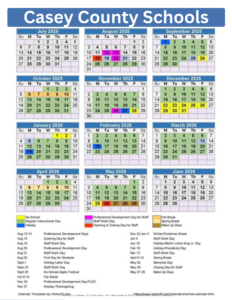 Casey County Schools Calendar 2025-2026 [Holidays]